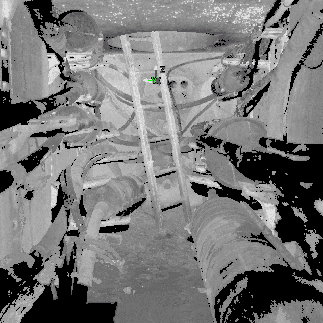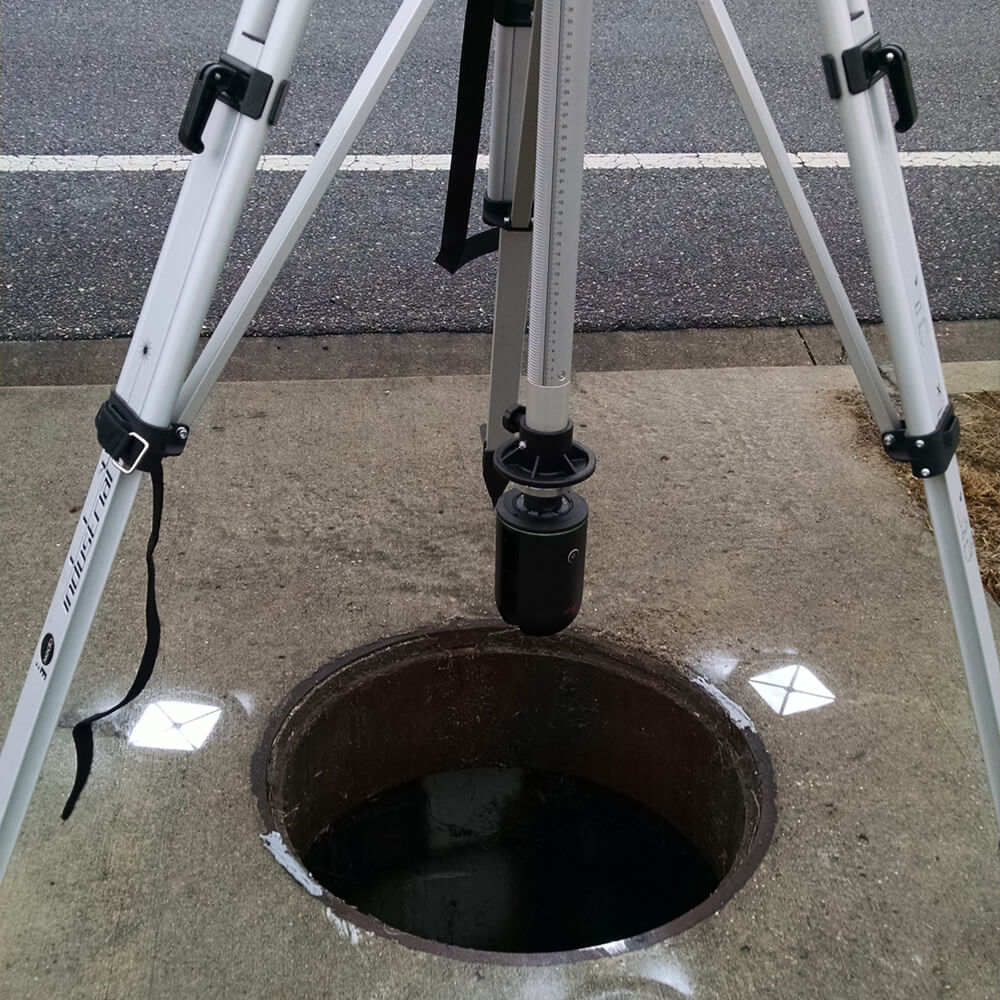 - Can scan in dark or light environments and gathers data on all surfaces and features within the line of sight, such as pipes, openings, or other features extending outward from the chamber or vault.